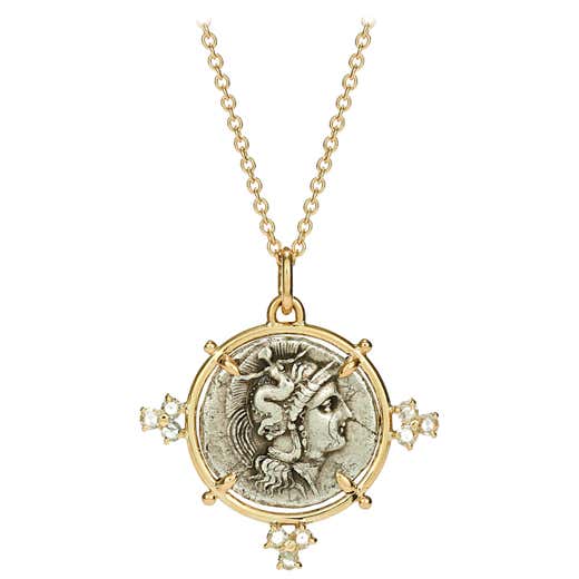 - Dubini Athena Ancient Silver Coin Medallion 18 Karat Yellow Gold Necklace